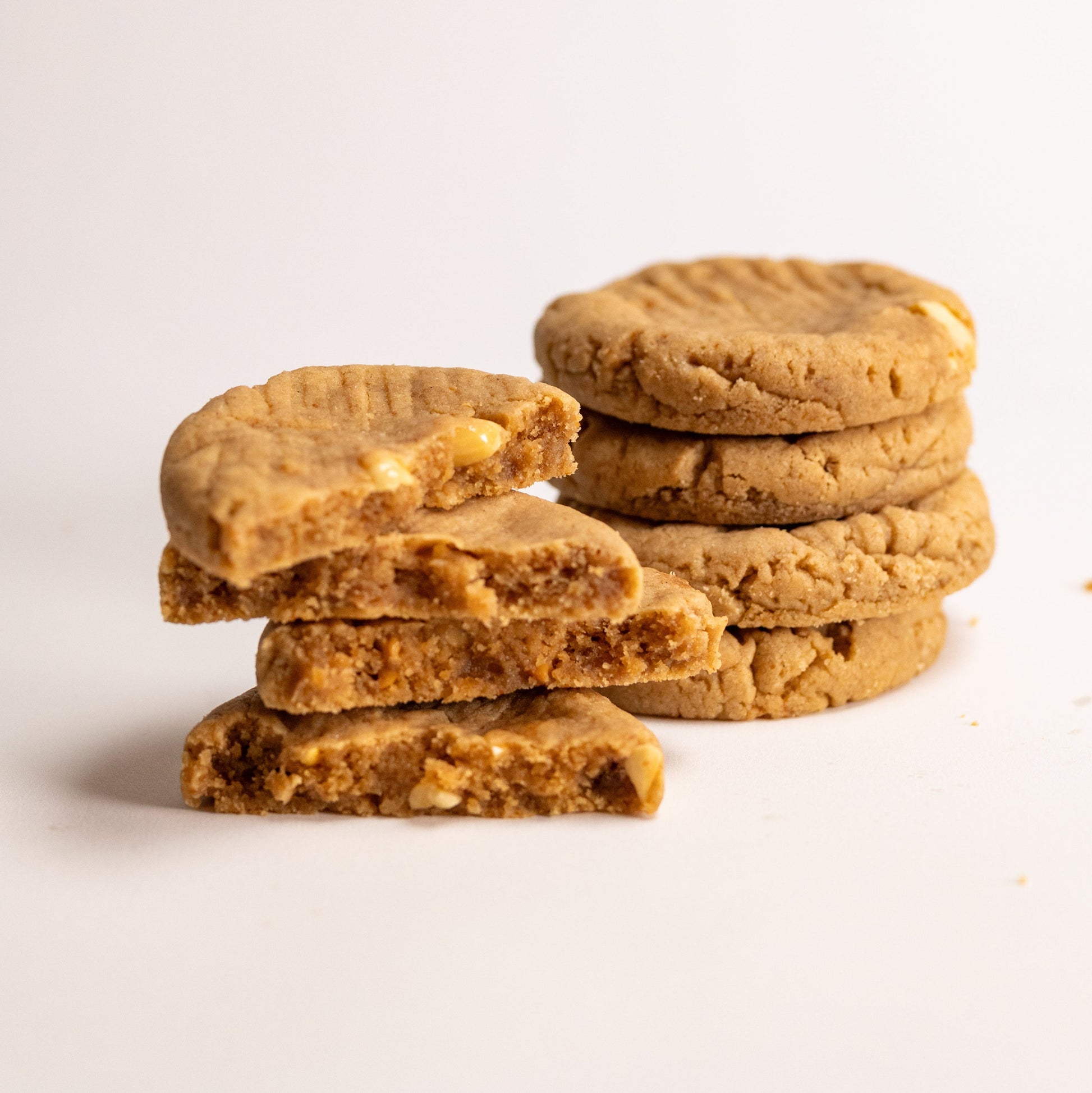 Made with natural peanut butter and browned butter for a deep, roasted flavour that melts into every bite. Soft, chewy, and finished with a fork-pressed top — just like home, but better.